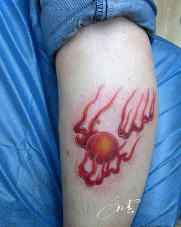 腿部彩色火焰珠纹身图案