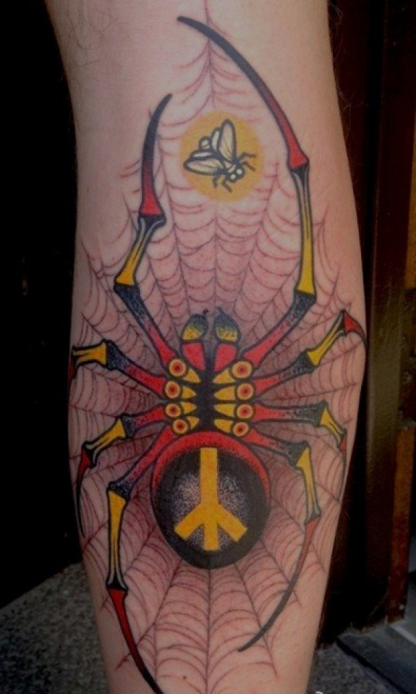 腿部超酷经典的蜘蛛纹身图案