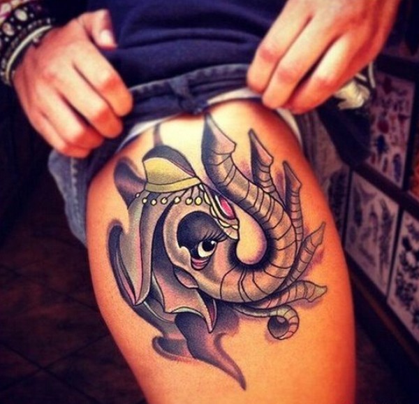 小腿上一款大象纹身图案_腿部纹身图案大全_纹身图吧