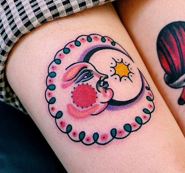 女生腿部月亮纹身图案