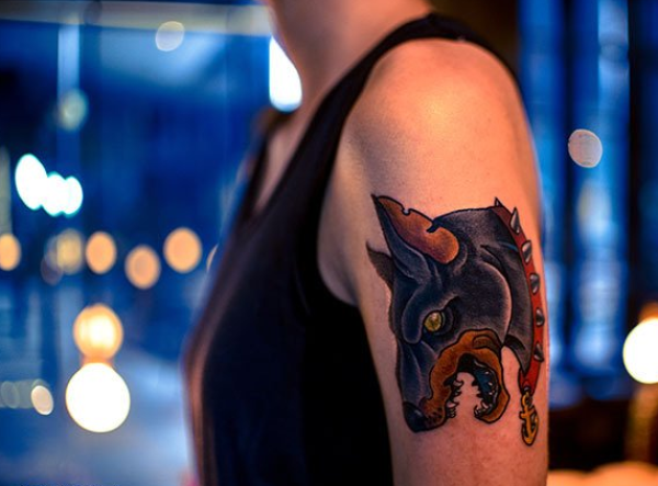 胳膊宝蓝色猎犬凶神恶煞纹身图案