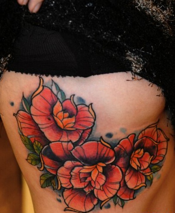女生胸侧好看的花卉纹身图案