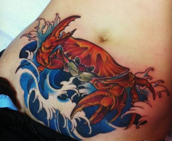 女生腹部时尚的螃蟹纹身图案