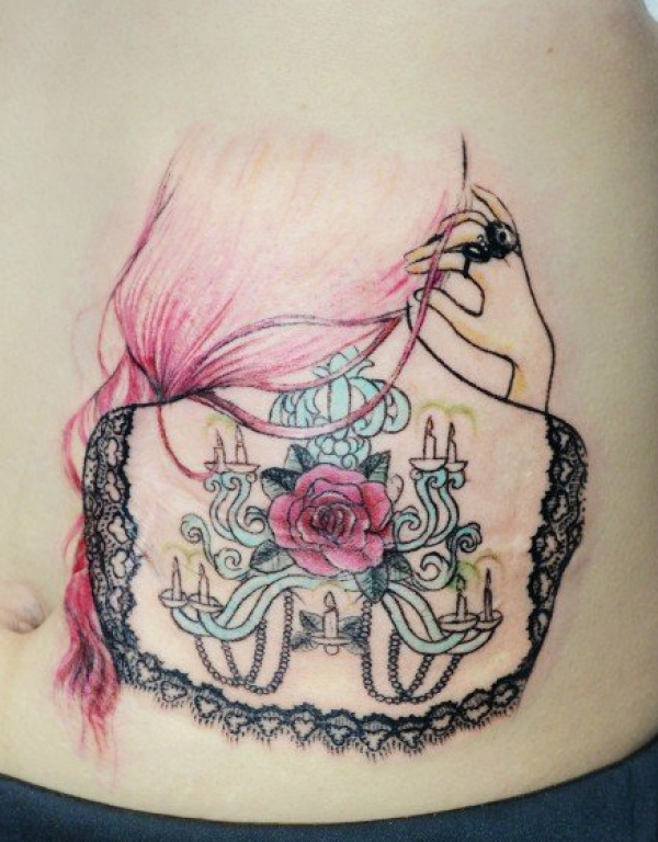 女性腰部莲花花纹刺青_腰部纹身图案大全_纹身图吧