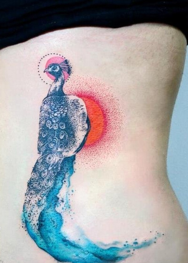分享一款腰部时尚性感的蝶恋花纹身图案_腰部纹身图案大全_纹身图吧
