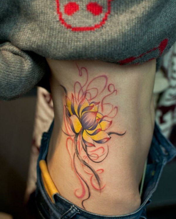 女生侧腰莲花纹身图案