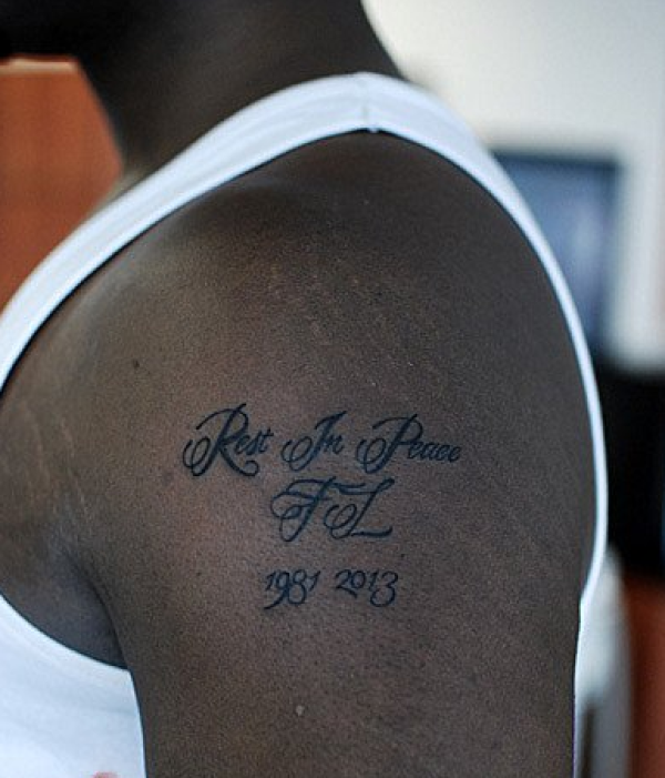 手臂英文花体日期纹身图案