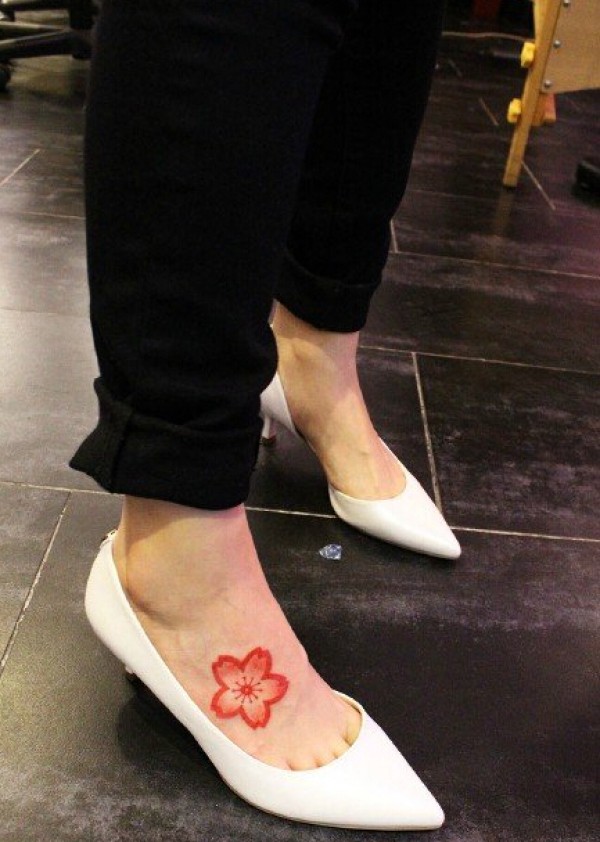 清新小桃花脚踝纹身_脚部纹身图案大全_纹身图吧