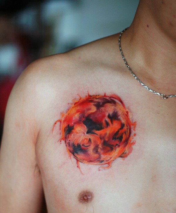 纹身图案胸部男 简洁大方的男生胸部纹身图案