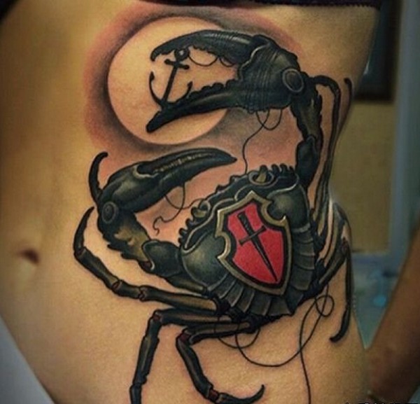 侧腰个性螃蟹纹身图案