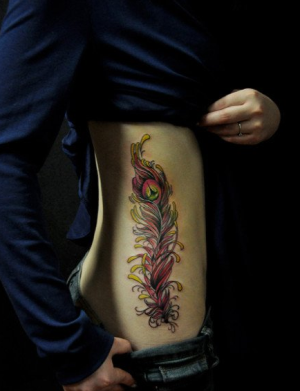 分享一款腰部时尚性感的蝶恋花纹身图案_腰部纹身图案大全_纹身图吧