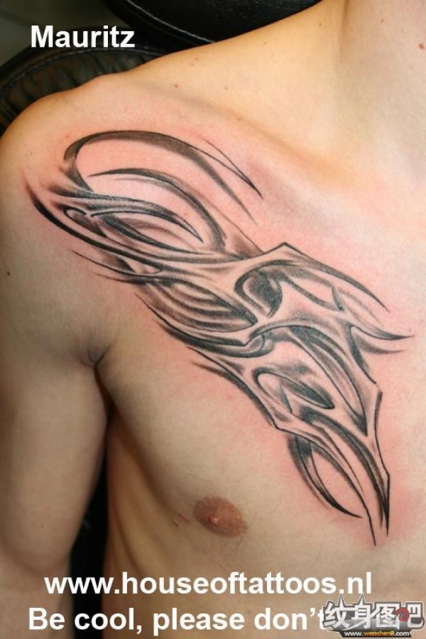 肩部半甲黑色图腾纹身
