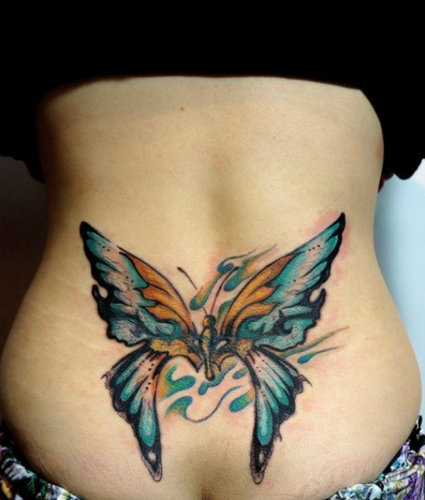 分享一款腰部时尚性感的蝶恋花纹身图案_腰部纹身图案大全_纹身图吧
