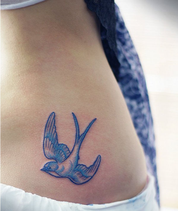 分享一款腰部时尚性感的蝶恋花纹身图案_腰部纹身图案大全_纹身图吧