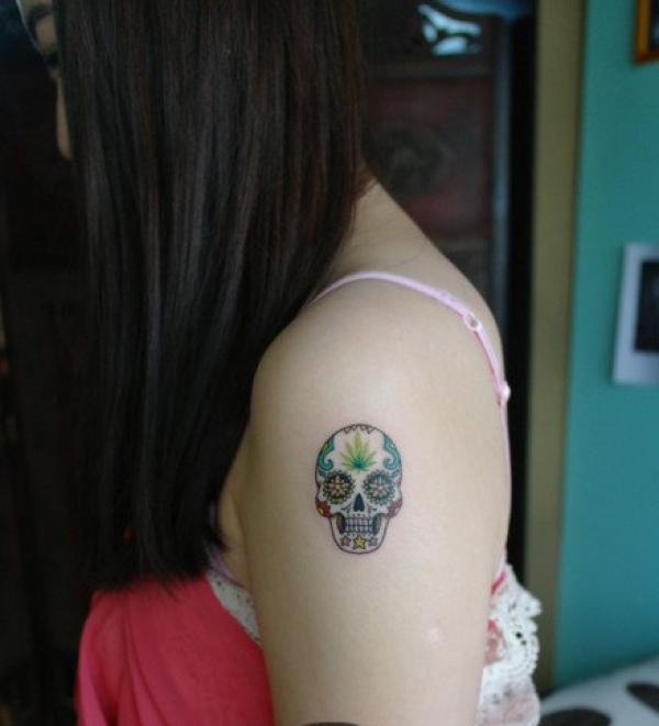 枫叶纹身骷髅文身彩色刺青_男士小图_骷髅纹身图案大全_纹身图吧