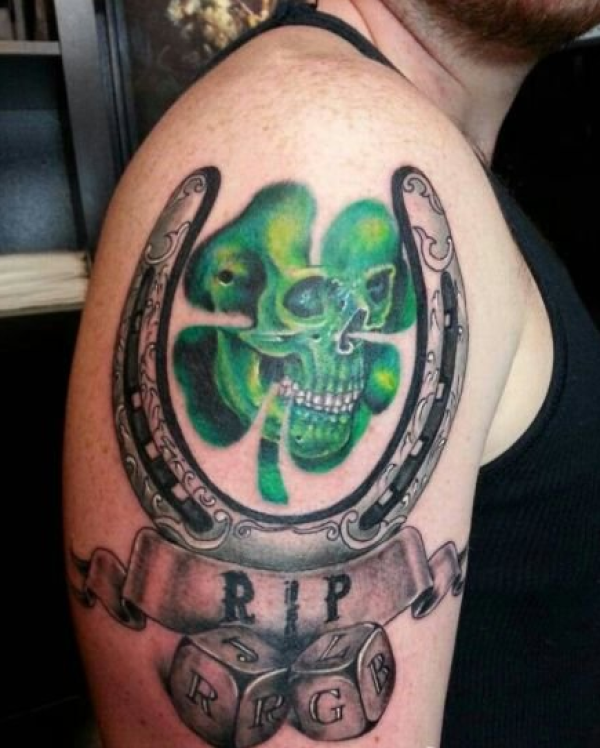 色彩鲜明霸气骷髅四叶草纹身图案