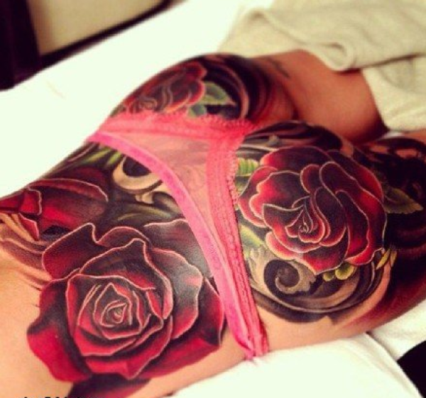 分享一款腰部时尚性感的蝶恋花纹身图案_腰部纹身图案大全_纹身图吧