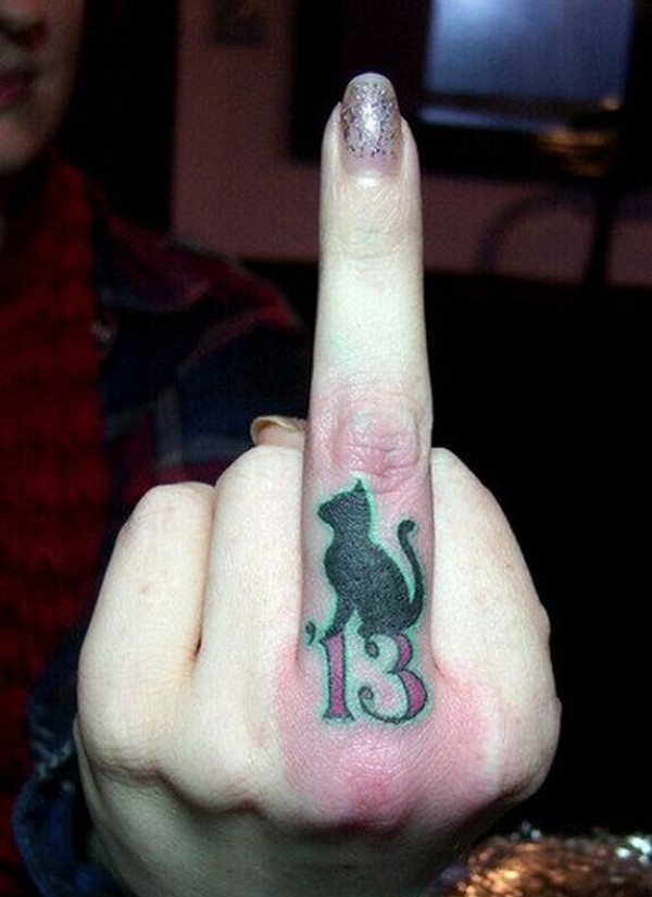 女生中指猫咪纹身图案