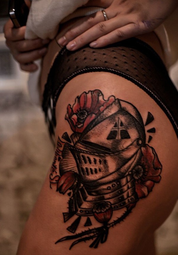 传统花腿纹身--18张传统风格的大花腿纹身图案作品