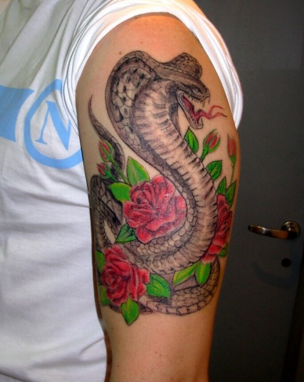 手臂莲花蛇纹身图案_臂部纹身图案大全_纹身图吧
