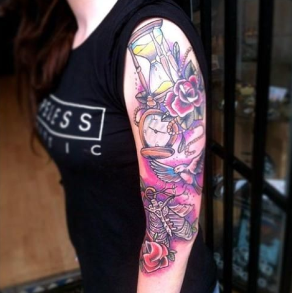 手臂一款彩色蘑菇纹身图案_臂部纹身图案大全_纹身图吧