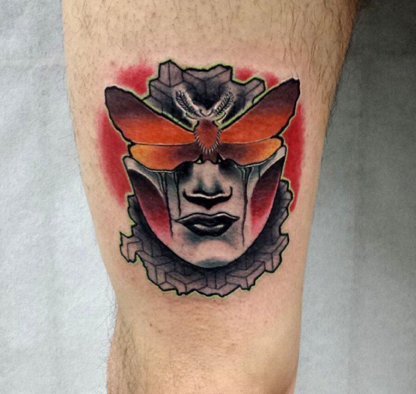 大腿上的欧美人物纹身作品