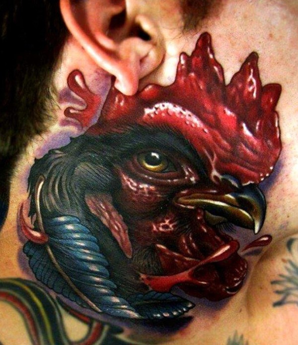 男人脖子彩色燕子刺青图案图片_脖子纹身图案大全_纹身图吧