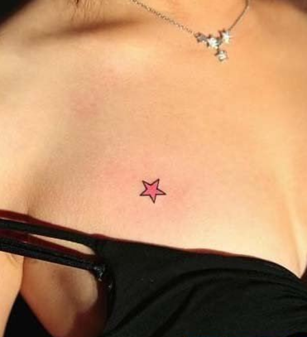 女性胸部简单好看的五角星纹身图片