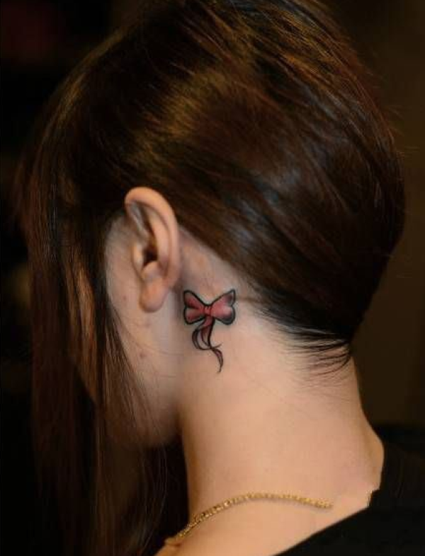粉色可爱蝴蝶结耳后文身图案