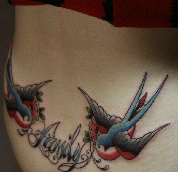 分享一款腰部时尚性感的蝶恋花纹身图案_腰部纹身图案大全_纹身图吧