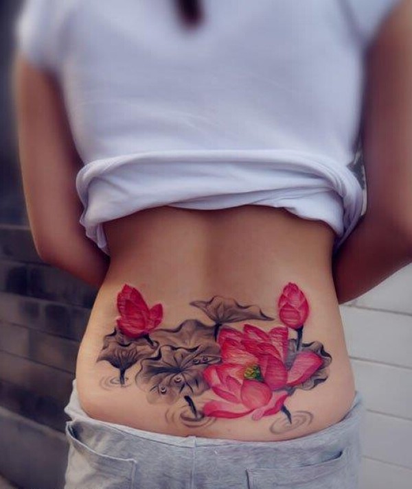 女性腰部莲花花纹刺青_腰部纹身图案大全_纹身图吧