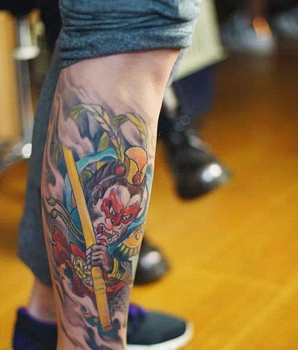 传统花腿纹身--18张传统风格的大花腿纹身图案作品