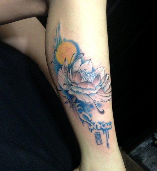 女生腿部唯美漂亮的雪莲花纹身图案