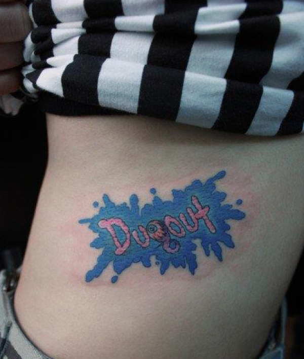 女生侧腰悦目的彩色字母纹身图案