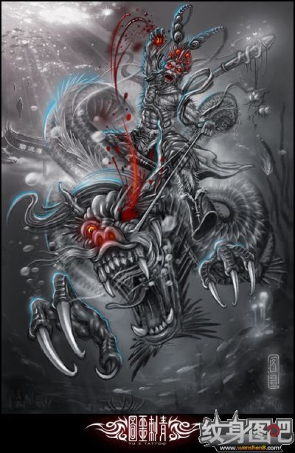 龙纹身手稿_一组老传统黑灰龙手稿纹身图案