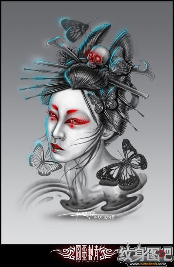 能面万媚纹身手稿_52张日式能剧面具纹身手稿图案素材欣赏