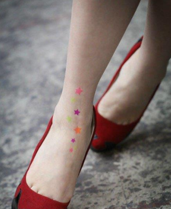 脚部好看的彩色五角星纹身图案