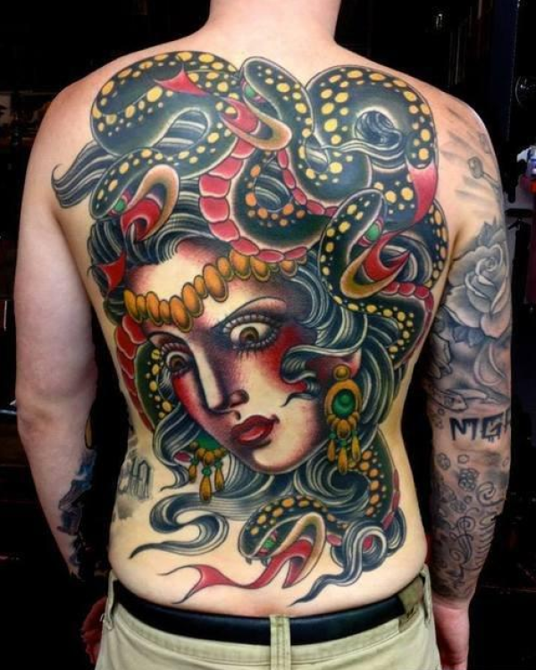 独特满背美杜沙纹身图案