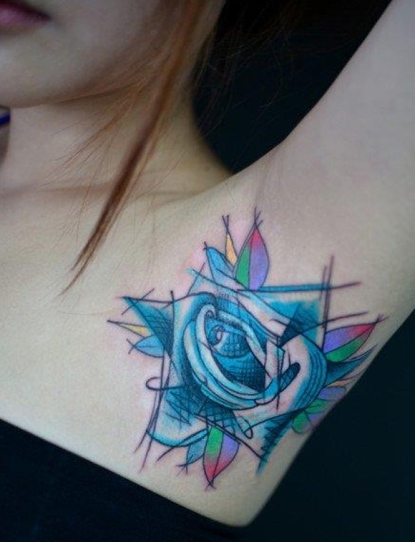 腋下漂亮精巧的玫瑰花纹身图案