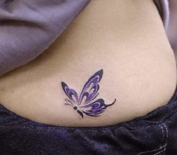 分享一款腰部时尚性感的蝶恋花纹身图案_腰部纹身图案大全_纹身图吧