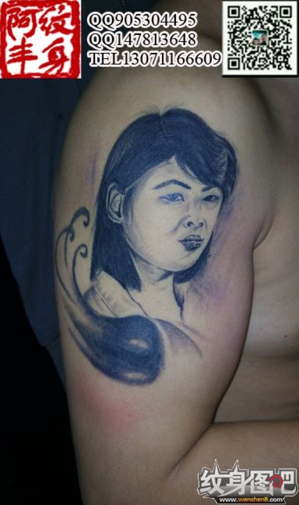 女性肩部肖像刺青_肖像纹身图案大全_纹身图吧