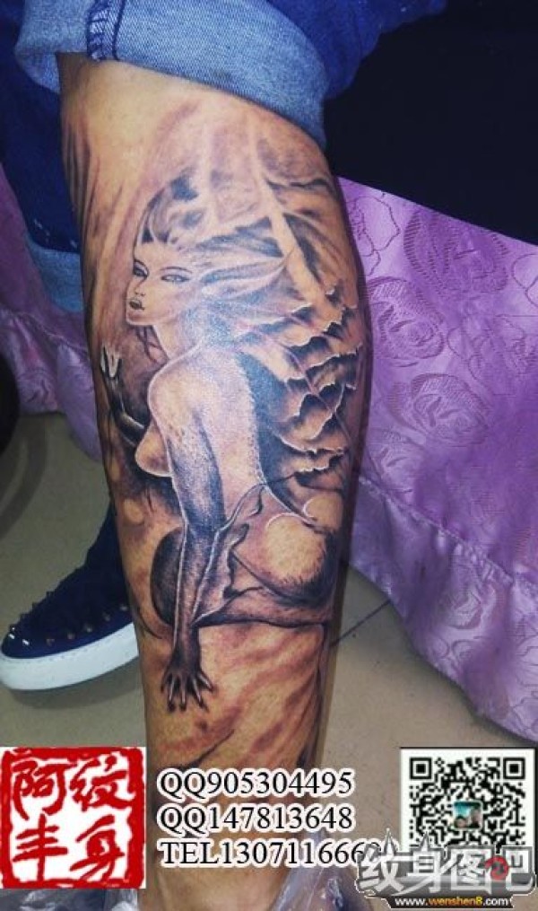 女生人物纹身图案 女生小腿上女生人物纹身图案
