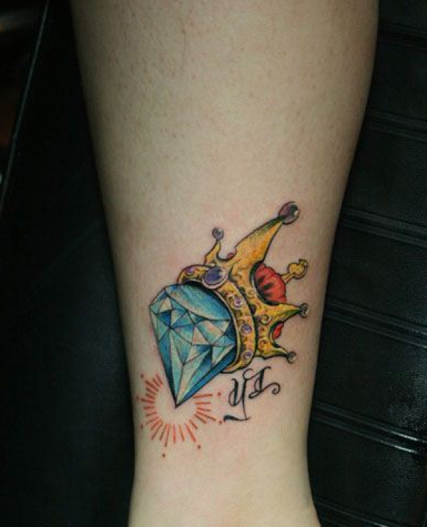 女性腿部精美时尚的钻石皇冠纹身