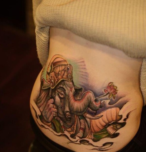 女性腰部莲花花纹刺青_腰部纹身图案大全_纹身图吧