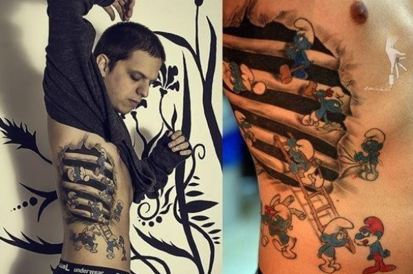 侧腰蓝精灵纹身图案