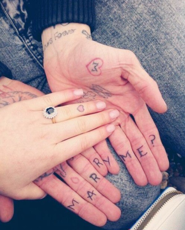 手指红心英文情侣纹身图案