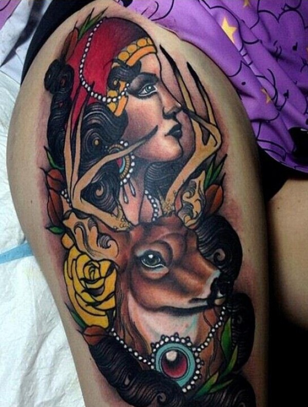 传统花腿纹身--18张传统风格的大花腿纹身图案作品