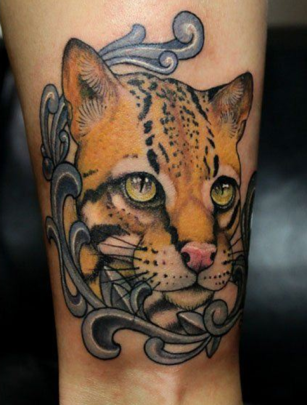 腿部经典潮流的豹子纹身图案
