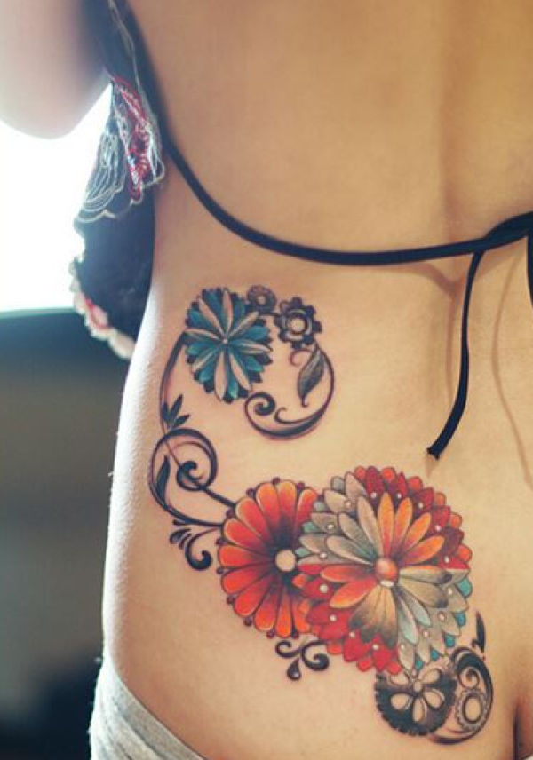 分享一款腰部时尚性感的蝶恋花纹身图案_腰部纹身图案大全_纹身图吧
