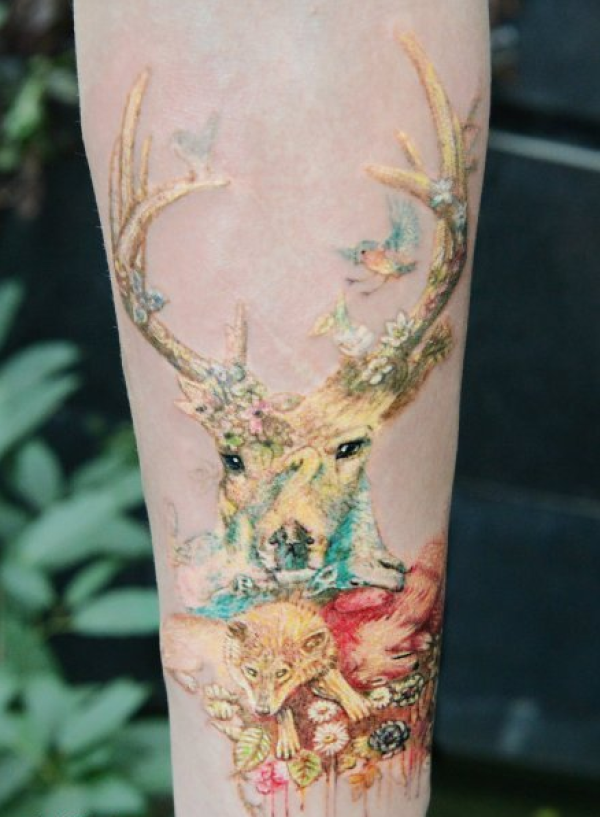 神奇呆萌鹿头纹身图案